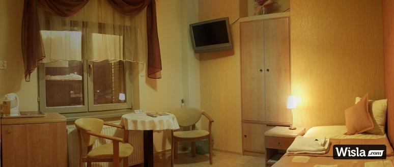 Willa Niby Nic położona jest w samym centrum Wisły, przy głównym deptaku miasta. Oferuje12 stylowo urządzonych pokoi o wysokim standardzie. Wszystkie pokoje wyposażone są w łazienkę z kabiną prysznicową lub wannę, telewizor LCD z telewizją satelitarną, bezpłatne WIFI, lodówkę, czajnik bezprzewodowy, ręczniki oraz łoża małżeńskie z możliwością rozłączenia. W naszej willi znajduje się również ogólnodostępny aneks kuchenny wyposażony w kuchenkę mikrofalową, lodówkę, kubki, szklanki, talerze i sztućce.